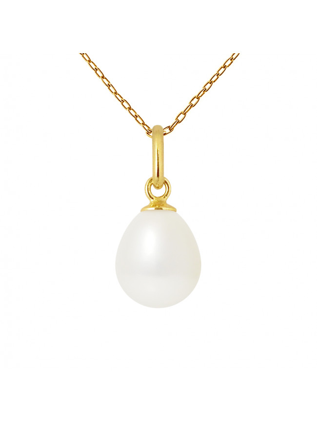 Pendentif Bélière Articulée Or Jaune - Véritable Perle de Culture d'Eau Douce Poire 8-9 mm - COLORI BLANC NATUREL - Livré avec Certificat d'Authenticité et de Garantie Internationale - * Ce...