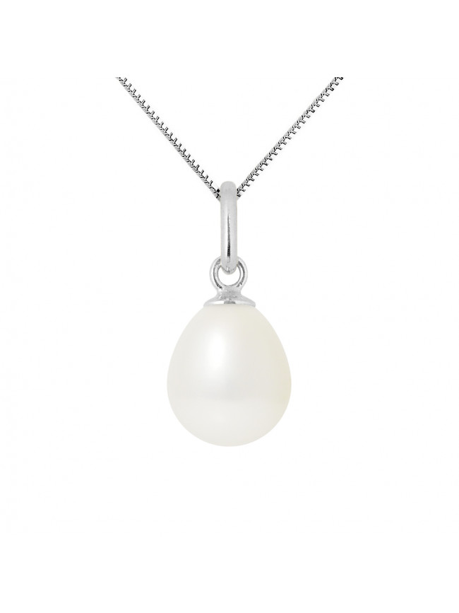 Pendentif Bélière Articulée Or Blanc - Véritable Perle de Culture d'Eau Douce Poire 8-9 mm - COLORI BLANC NATUREL - Livré avec Certificat d'Authenticité et de Garantie Internationale - * Ce...