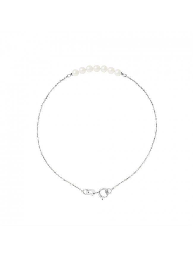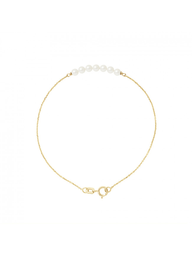 Bracelet 7 Véritables Perles de Culture d'Eau Douce Rondes 3-4 mm - Colori BLANC NACRE NATUREL - Chaine Forçat Or Jaune - Longueur 18 cm - Livré avec Certificat d'Authenticité et de Garantie...