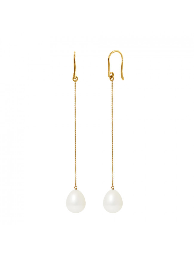 Boucles d'Oreilles Or Jaune & Véritables Perles de Culture d'Eau Douce 6 - 7 mm - COLORI BLANC NATUREL - Système Poussettes Or - Livrées avec Certificat d'Authenticité et de Garantie internationale -