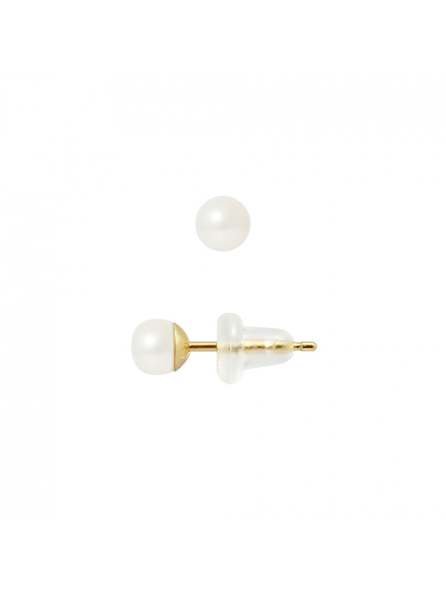 Boucles d'Oreilles Or Jaune - Véritables Perles de Culture d'Eau Douce Boutons 4-5 mm - COLORI BLANC NATUREL - Système Poussettes SILICONE - Livrées avec Certificat d'Authenticité et de Garantie...