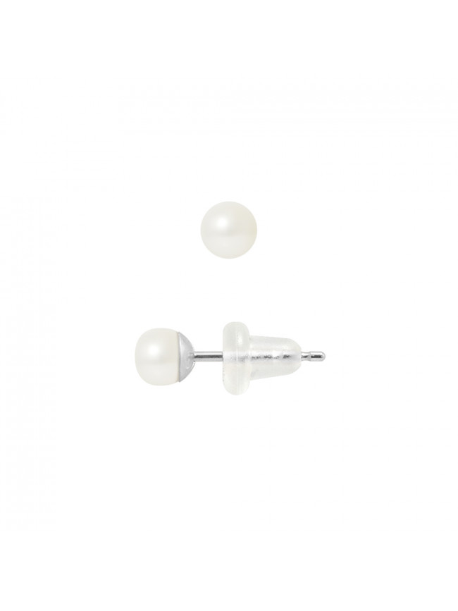 Boucles d'Oreilles Or Blanc - Véritables Perles de Culture d'Eau Douce Boutons 4-5 mm - COLORI BLANC NATUREL - Système Poussettes SILICONE - Livrées avec Certificat d'Authenticité et de Garantie...