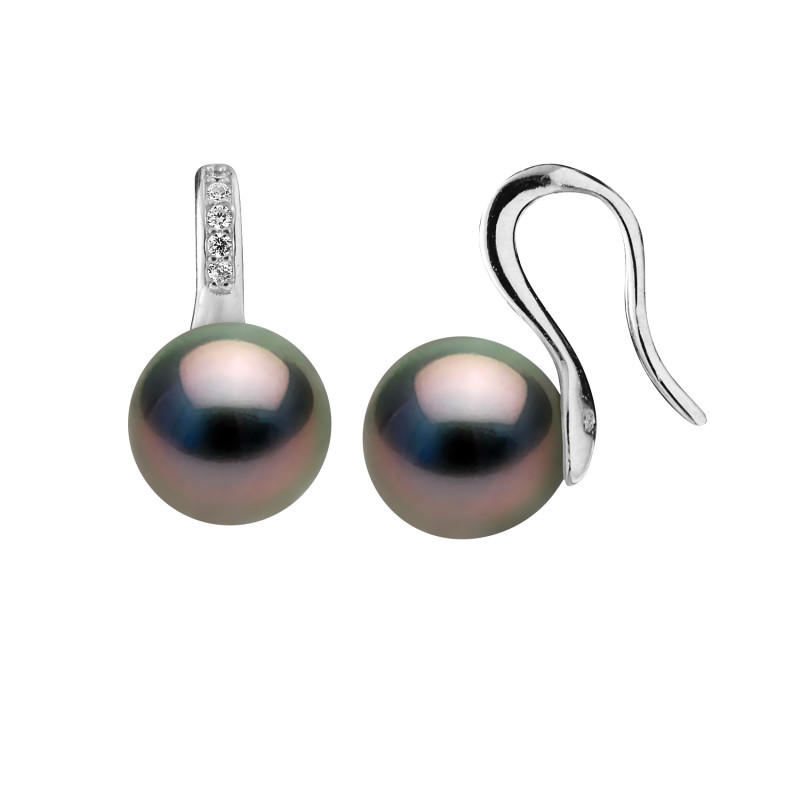 Boucles d'Oreilles - Joaillerie Argent - Véritables Perles de TAHITI Rondes 9-10 mm - Serties Oxydes de Zyrconium - Système Poussettes - Livrées avec Certificat d'Authenticité et de Garantie Internationale.