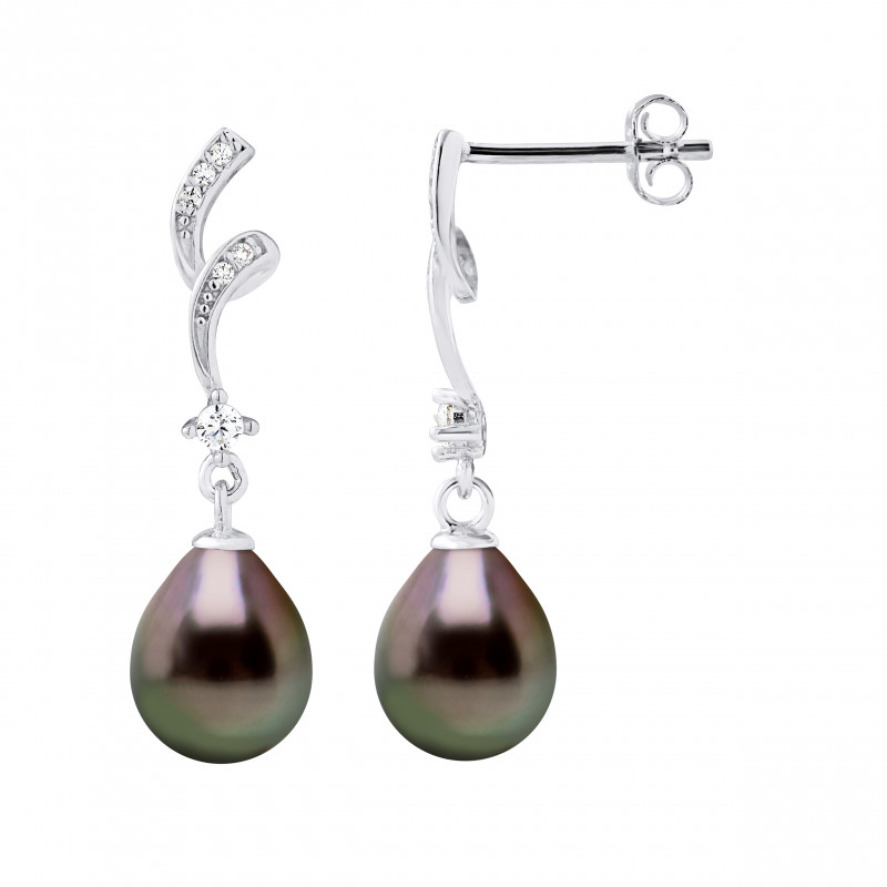 Boucles d'Oreilles Tourbillon Véritables Perles de Culture d'Eau Douce Ovales 8-9 mm - Système Poussettes -Argent 925 Millièmes Rhodié - Livrées avec Certificat d'Authenticité et de Garantie internationale