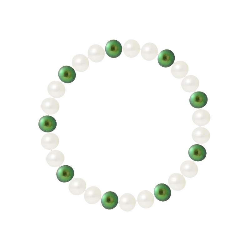Bracelet - Véritables Perles de Culture d'Eau Douce Semi Rondes 7-8 mm - COLORI VERT MALACHITE - Elastiqué / Longueur 18 cm - Convient pour poignet de 14 à 17,5 cm - Livré avec Certificat d'Authenticité et de Garantie internationale -