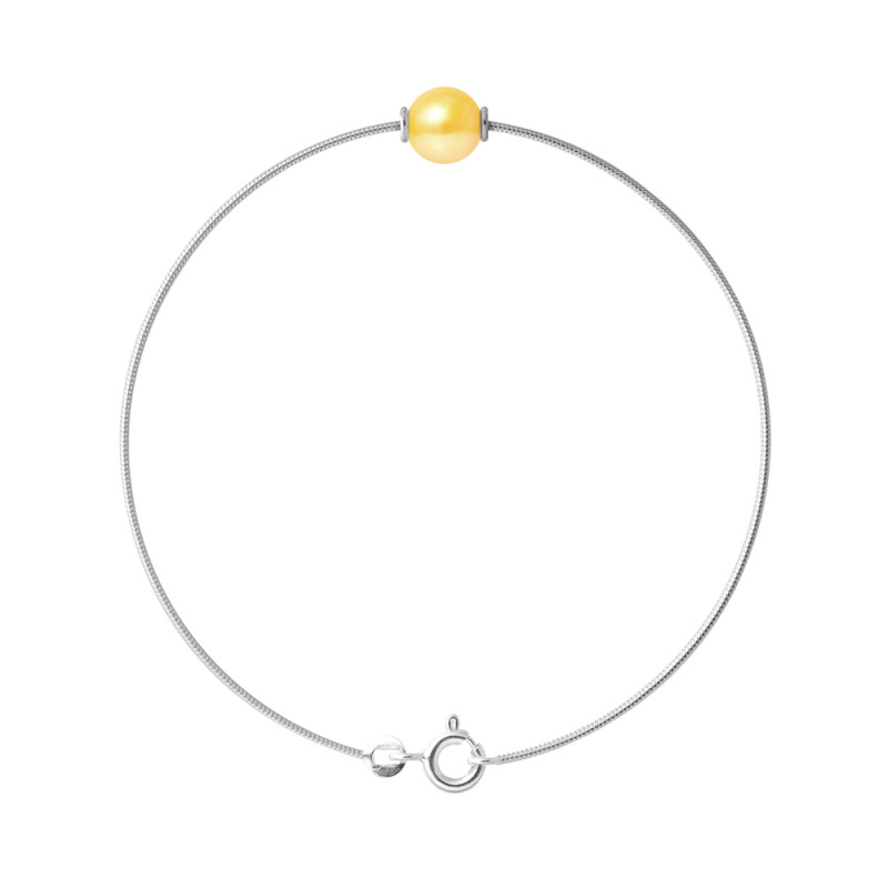 Collier Véritable Perle de Culture d'Eau Douce Poire 9-10 mm en Pendentif - COLORI JAUNE DORE - Maille Vénitienne en Argent Rhodié 925 Millièmes / Longueur 42 cm - Livré avec Certificat d'Authenticité et de Garantie internationale -