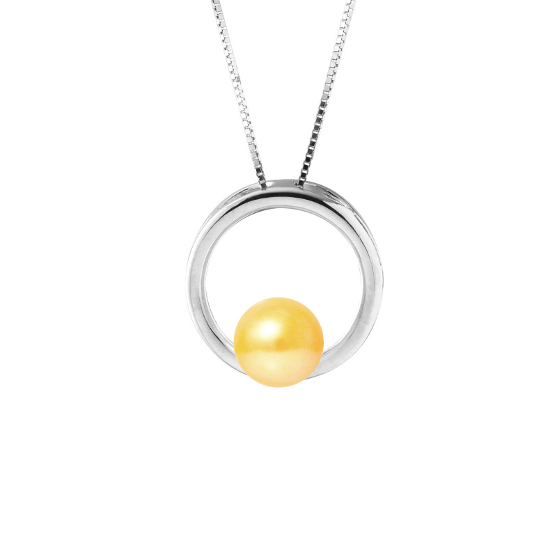Bracelet Véritable Perle de Culture d'Eau Douce TRAVERSANTE Ronde 9-10 mm - COLORI JAUNE DORE - Maille Serpentine et Manchons Argent Rhodié 925 Millièmes / Longueur 18 cm - Livré avec Certificat d'Authenticité et de Garantie internationale -