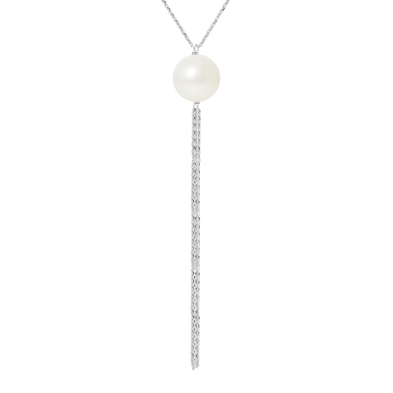Collier DUO - 2 Véritables Perles de Culture d'Eau Douce Rondes 9-10 mm - COLORI BLANC NATUREL - Chaîne Forçat Argent 925 Millièmes Rhodié / Longueur 42 cm - Livré avec Certificat d'Authenticité et de Garantie internationale -