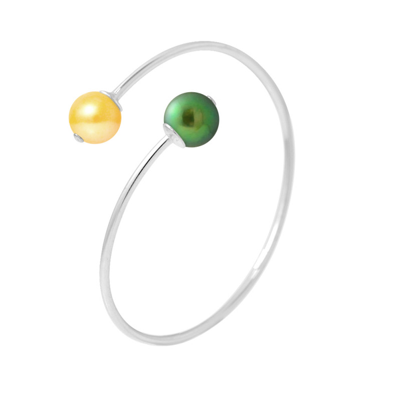 Bracelet CHARM'S - 4 Véritables Perles de Culture d'Eau douce Rondes 7-8 mm - COLORI VERT MALACHITE + CHARMS Cœur - Argent 925 Millièmes - Longueur Réglable de 14 à 18 cm - Livré avec Certificat d'Authenticité et de Garantie internationale