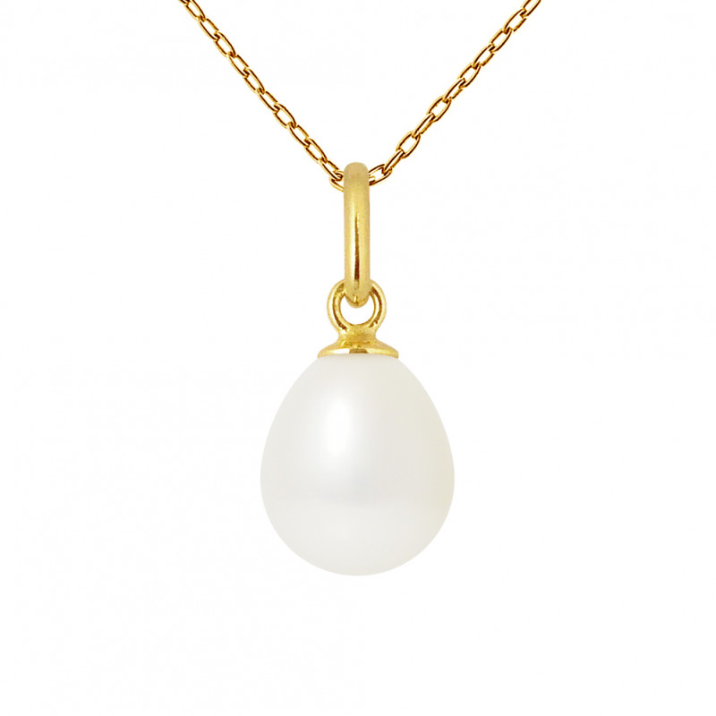 Pendentif Bélière Articulée Or Jaune - Véritable Perle de Culture d'Eau Douce Poire 8-9 mm - COLORI BLANC NATUREL - Livré avec Certificat d'Authenticité et de Garantie Internationale - * Ce pendentif Vous sera livré avec une chaine plaquée Or Jaune - Longueur 42 cm - Offerte
