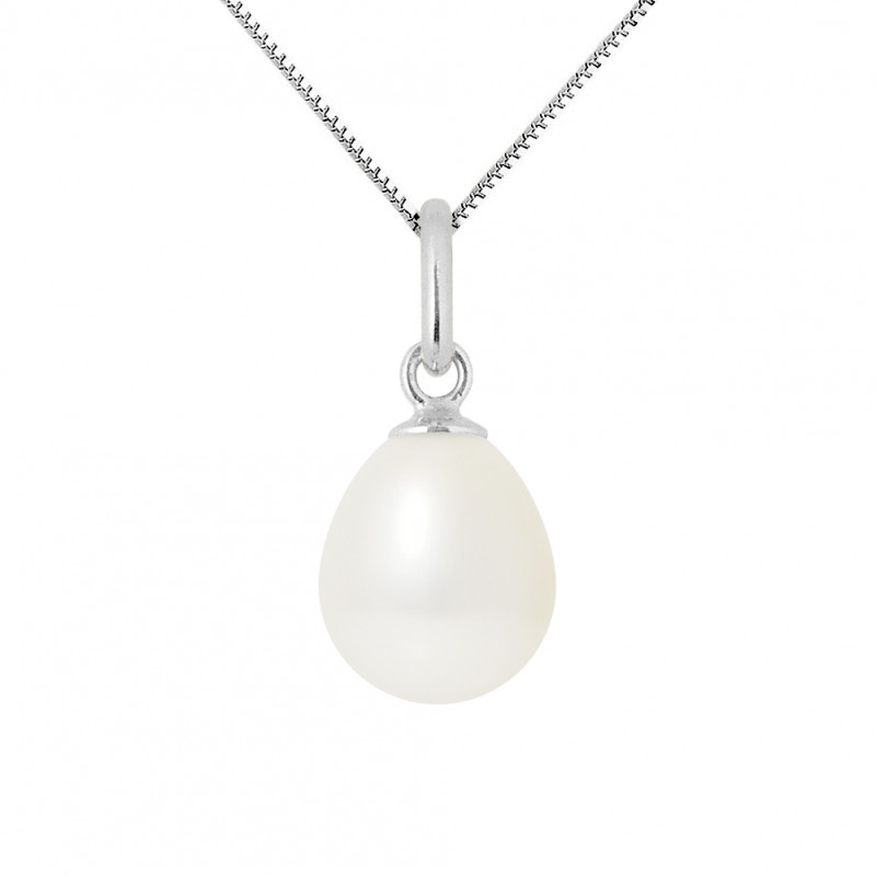 Pendentif Bélière Articulée Or Blanc - Véritable Perle de Culture d'Eau Douce Poire 8-9 mm - COLORI BLANC NATUREL - Livré avec Certificat d'Authenticité et de Garantie Internationale - * Ce pendentif vous sera livré avec une chaine Argent 925 Millièmes Rhodiée - Longueur 42 cm - Offerte