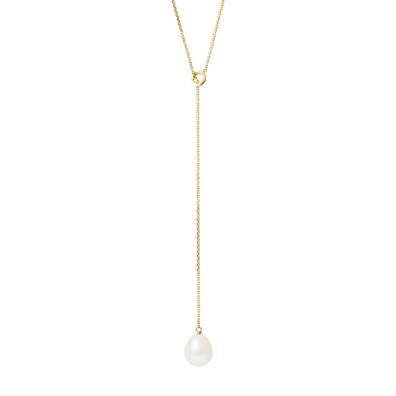 Collier Lasso - Véritable Perle de Culture d'Eau Douce Poire 7-8 mm - COLORI BLANC NATUREL - Chaine Forcat / Tour de cou 45 cm - Longueur Totale 50 cm - Or Blanc 375 Millièmes - Livré avec Certificat d'Authenticité et de Garantie internationale -