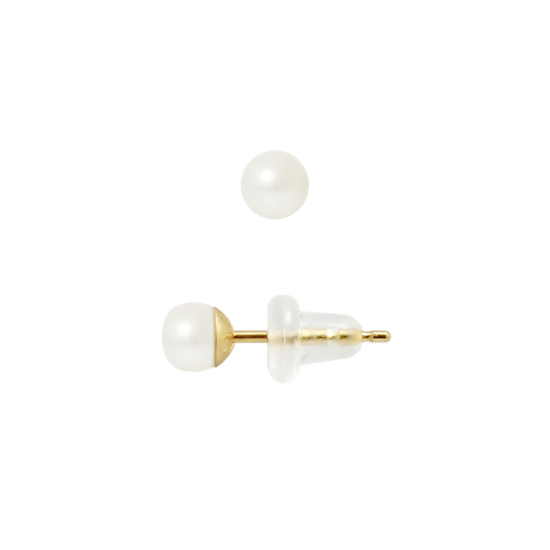 Boucles d'Oreilles Or Jaune - Véritables Perles de Culture d'Eau Douce Boutons 4-5 mm - COLORI BLANC NATUREL - Système Poussettes SILICONE - Livrées avec Certificat d'Authenticité et de Garantie internationale -