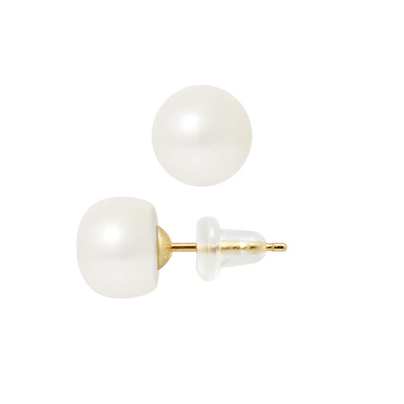 Boucles d'Oreilles Or Jaune & Véritables Perles de Culture d'Eau Douce 8 - 9 mm - COLORI BLANC NATUREL - Système Poussettes SILICONE - Livrées avec Certificat d'Authenticité et de Garantie internationale - MANUFACTUREES DANS NOS ATELIERS Français