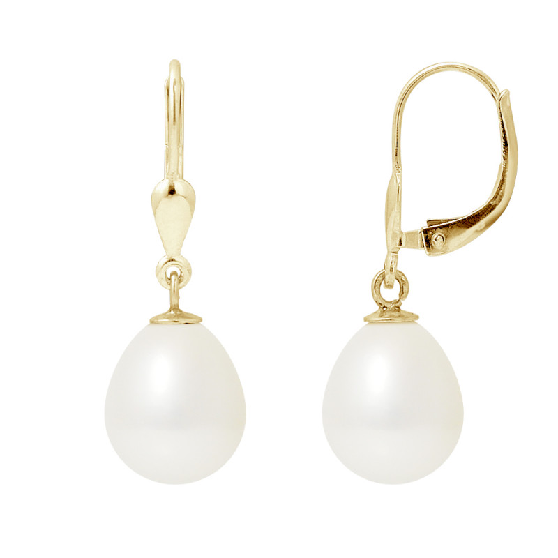 Boucles d'Oreilles Or Jaune & Véritables Perles de Culture d'Eau Douce POIRES 9-10 mm - COLORI BLANC NATUREL - Système BRISURES - Livrées avec Certificat d'Authenticité et de Garantie internationale -