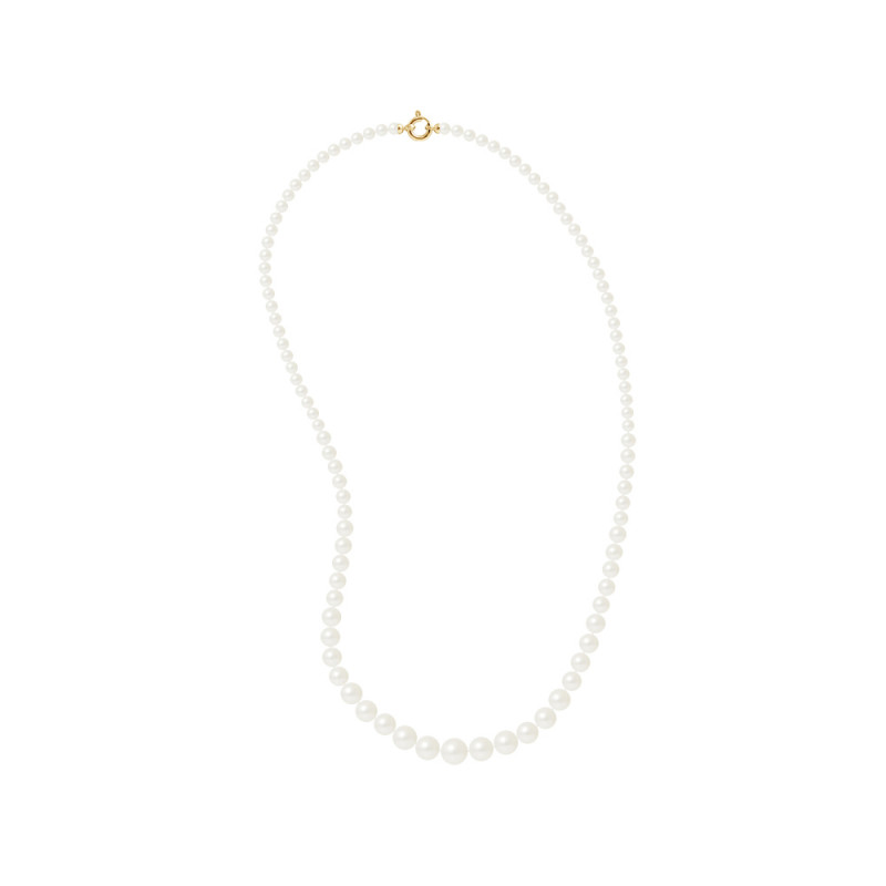 Collier Or - Rang de Véritables Perles d'Eau Douce Rondes 11 à 5 mm en dégradé - Colori BLANC NATUREL - Longueur 60 cm - Fermoir ANNEAU MARIN PRESTIGE Or Jaune 375 Millièmes - Livré avec Certificat d'Authenticité et de Garantie internationale - MANUFACTURE DANS NOS ATELIERS Français