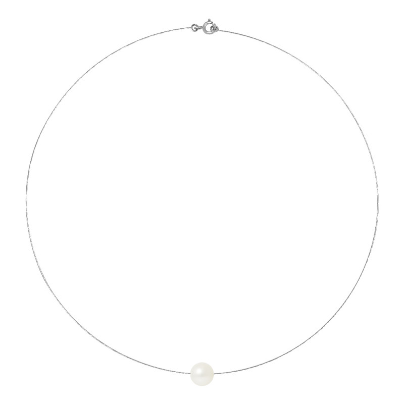 Collier Véritable Perle de Culture d'Eau Douce ronde 9-10 mm - COLORI BLANC NATUREL - Câble / Longueur 42 cm - Or Jaune 375 millièmes - Livré avec Certificat d'Authenticité et de Garantie internationale -