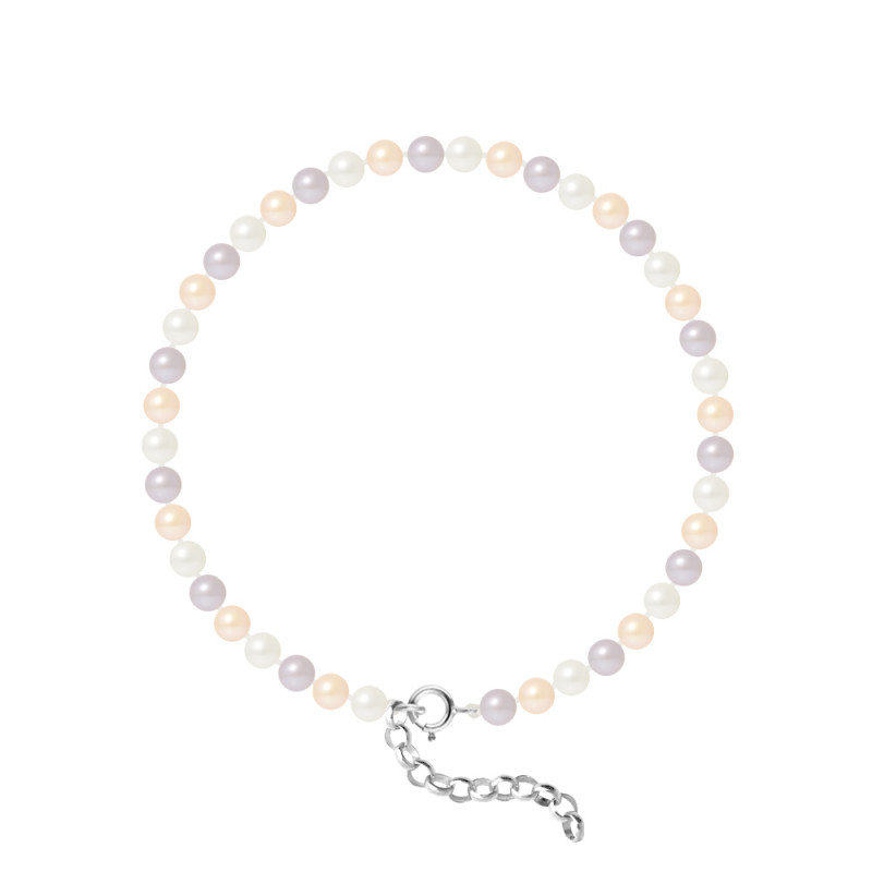 Rang de Perles - Bracelet - véritables Perles de Culture d'Eau Douce Rondes 4-5 mm - COLORI MULTICOLORE - COULEURS PASTELLES NATURELLES ( ROSE - LAVANDE - ORANGE - BLANC ) - Fermoir Anneau Ressort Argent 925 Millièmes Rhodié - Longueur 18 cm réglable jusqu'à 21 cm - Livré avec Certificat d'Authenticité et de Garantie Internationale -