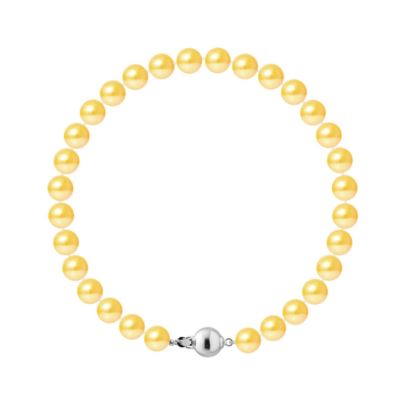 Rang de Perles - Bracelet - véritables Perles de Culture d'Eau Douce Rondes 6-7 mm - COLORI JAUNE DORE - Fermoir Boule Système imperdable 925 Millièmes Rhodié - Longueur 18 cm - Livré avec Certificat d'Authenticité et de Garantie Internationale -
