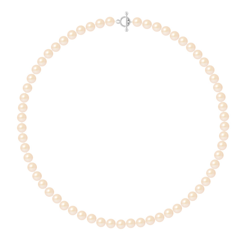 Rang de Perles - Collier- véritables Perles de Culture d'Eau Douce Rondes 8-9 mm - COLORI ROSE NATUREL - Fermoir Bâtonnet Argent 925 Millièmes Rhodié - Longueur 45 cm - Livré avec Certificat d'Authenticité et de Garantie internationale -