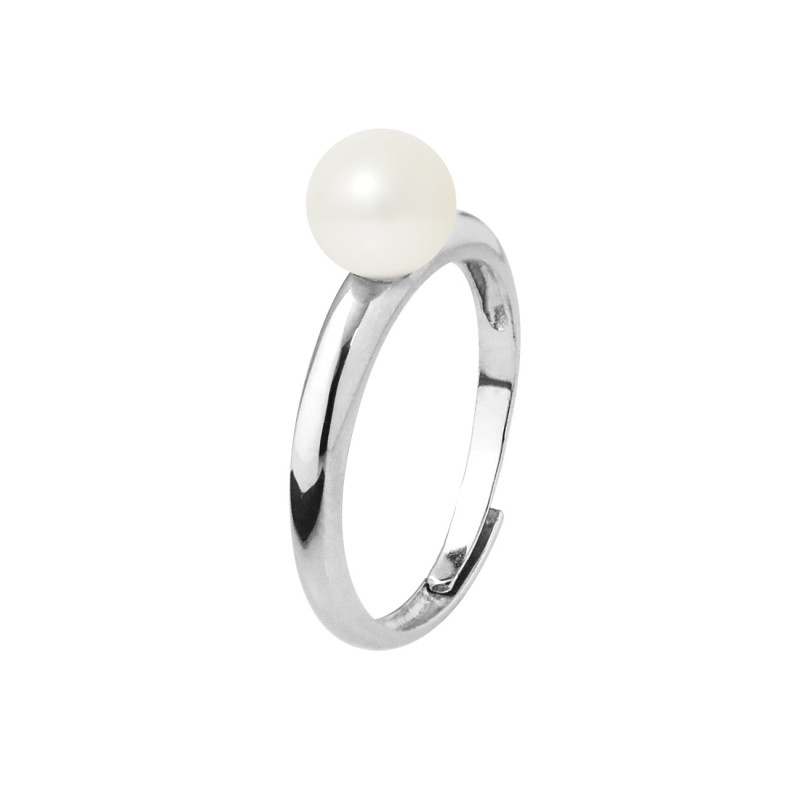 Bague Jonc Bombé - Véritable Perle de Culture d'Eau Douce Ronde 6-7 mm - COLORI BLANC NATUREL - Argent 925 Millièmes Rhodié - Bague ajustable de la taille 48 à la taille 62 - Livrée avec Certificat d'Authenticité et de Garantie internationale -