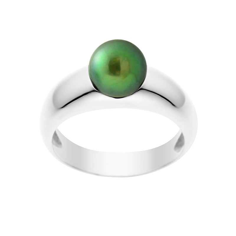Bague Jonc Bombé large - Véritable Perle de Culture d'Eau Douce Ronde 8-9 mm - COLORI VERT MALACHITE - Argent 925 Millièmes Rhodié - Disponible de la Taille 48 à la Taille 62 - Livré avec Certificat d'Authenticité et de Garantie Internationale -