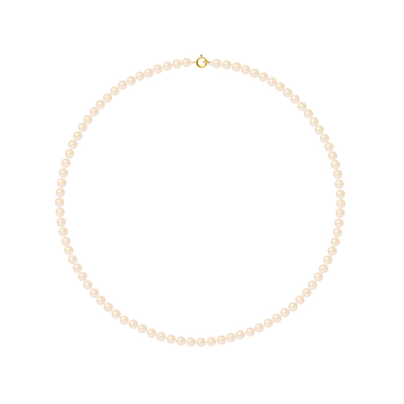 Collier Or - Rang de Véritables Perles d'Eau Douce Rondes 4-5 mm - COLORI ROSE NATUREL - Longueur 42 cm - Fermoir Anneau Ressort Confort (Diamètre 6 mm) - Or Jaune 375 Millièmes - Livré avec Certificat d'Authenticité et de Garantie Internationale -