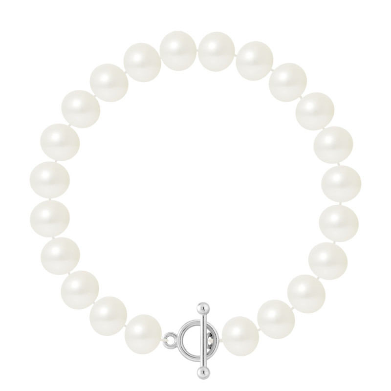 Rang de Perles - Bracelet - véritables Perles de Culture d'Eau Douce semiRondes 9-10 mm - COLORI BLANC NACRE NATUREL - Fermoir Bâtonnet Argent 925 Millièmes Rhodié - Longueur 18 cm - Livré avec Certificat d'Authenticité et de Garantie internationale -