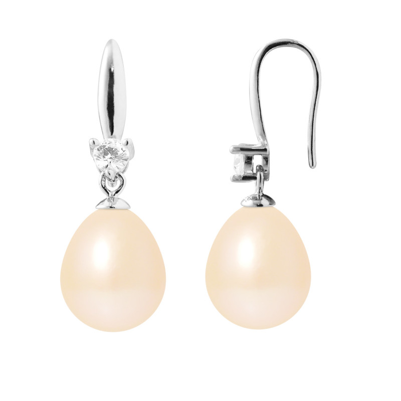Boucles d'Oreilles - Joaillerie Argent - Véritables Perles de Culture d'Eau Douce Poires 9-10 mm - Serties Oxydes de Zyrconium - COLORI BLANC NATUREL - Système Poussettes - Livrées avec Certificat d'Authenticité et de Garantie Internationale -