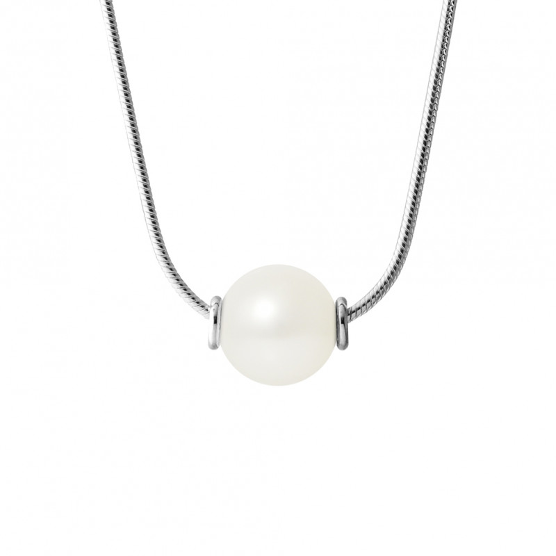 Collier Véritable Perle de Culture d'Eau Douce Ronde 8-9 mm en Pendentif - COLORI BLANC NATUREL - Maille Vénitienne Argent Rhodié 925 Millièmes / Longueur 42 cm - Livré avec Certificat d'Authenticité et de Garantie internationale -