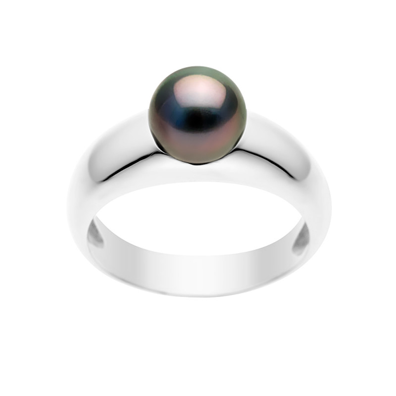 Bague Gus - Jonc Bombé - Or Blanc - Véritable Perle de Culture de TAHITI RONDE 8-9 mm - COLORI BLANC NATUREL - DISPONIBLE TAILLE PAIRES du 48 au 62 - Livrée avec Certificat d'Authenticité et de Garantie internationale - MANUFACTUREE DANS NOS ATELIERS Français