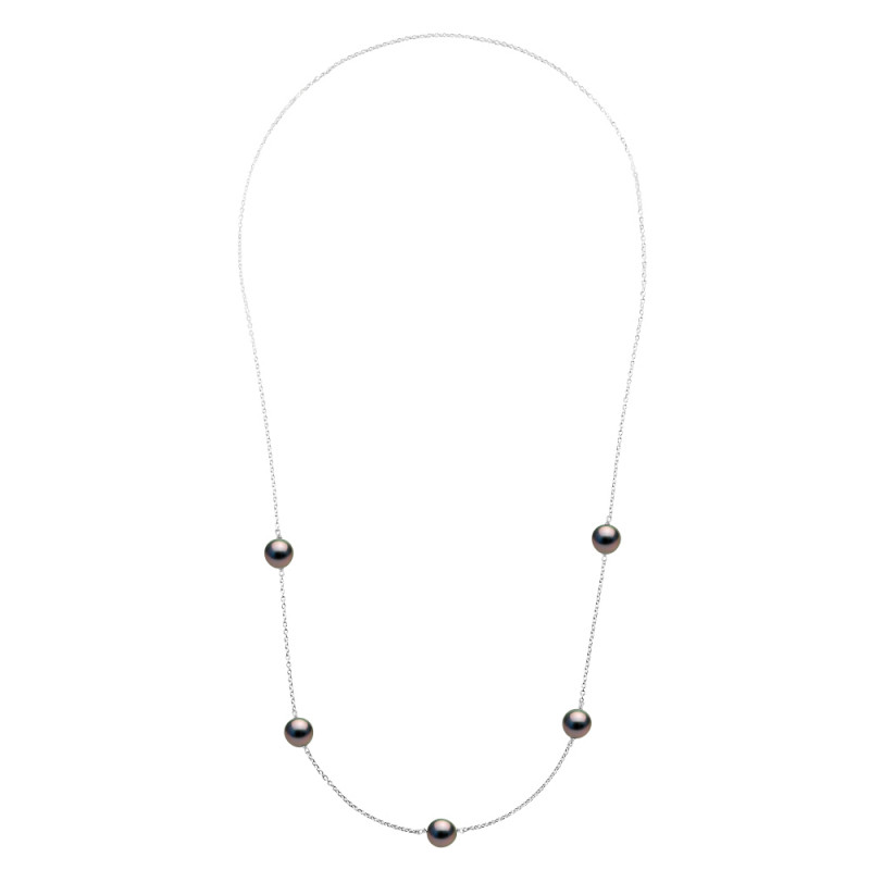 Collier Sayna - Long / Sautoir - PRESTIGE - 5 Véritables Perles de Culture de TAHITI Rondes 9-10 mm - Chaîne Forçat Argent Massif 925 Millièmes Rhodié / Longueur 80 cm - Livré dans son Ecrin accompagné de son Certificat d'Authenticiité et de Garantie Internationale